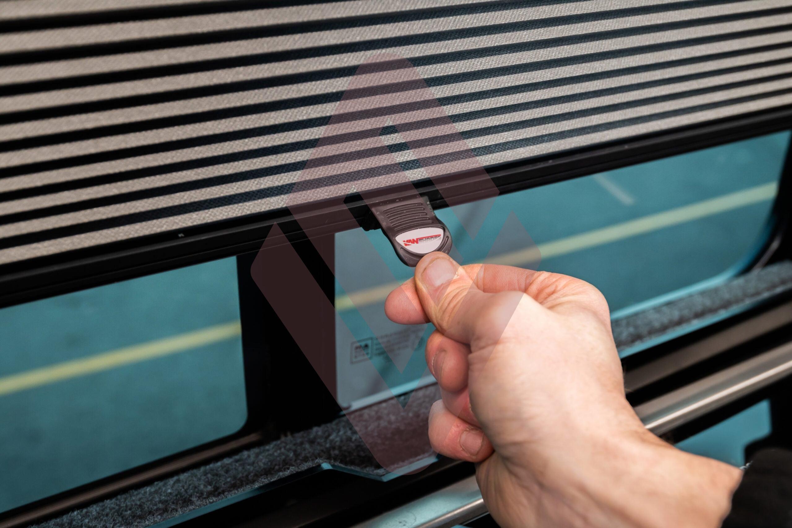 The Vanshades Original Window Pod® system is a camper van window blinds system that is an easy to install, pre-assembled blind and frame system which offers stylish privacy for all windows of your Ford Transit Custom camper van.
