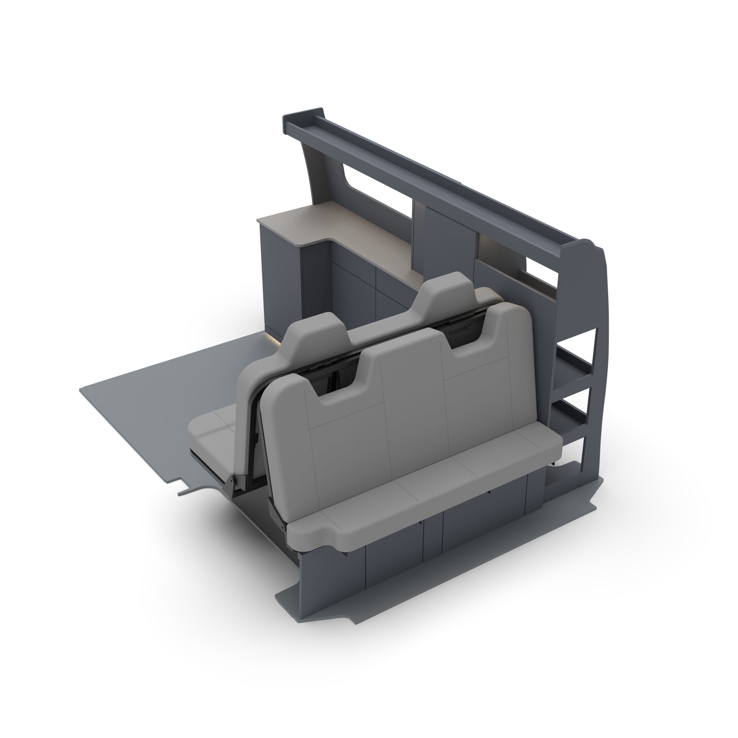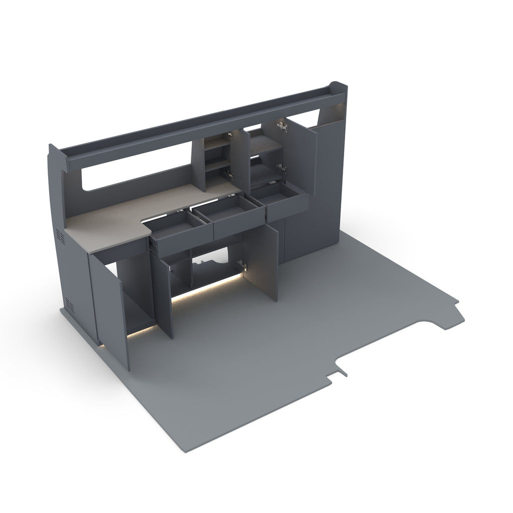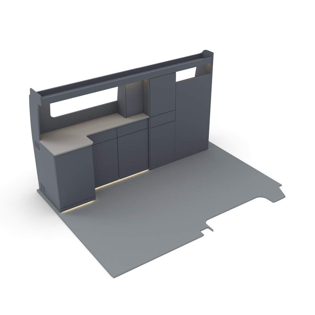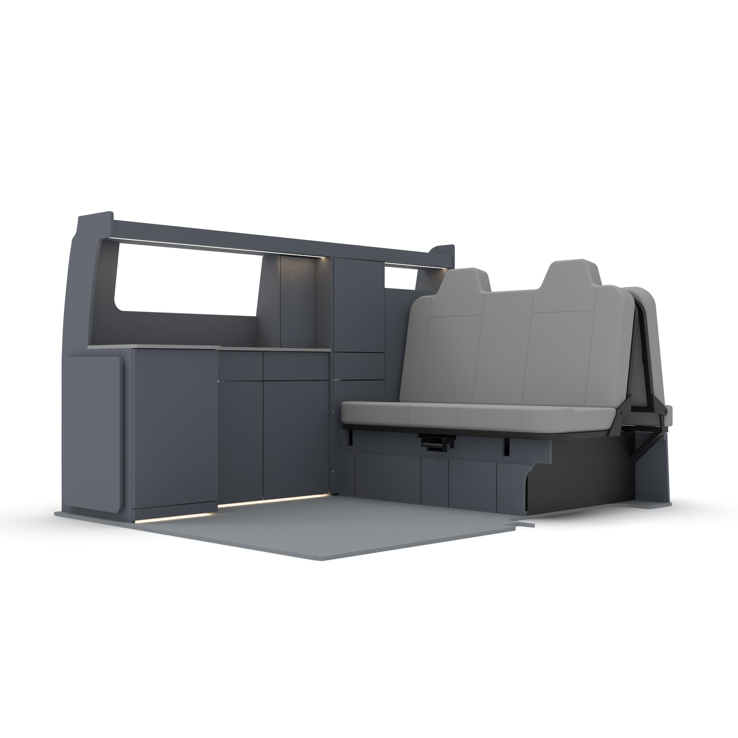 The slimline spin on the 'classic' campervan kitchen design, for those who want to compromise on kitchen and benefit from a bigger seating and sleeping area, the typical side kitchen ready to be paired with a 120cm rock and roll bed, experience our redefined flowing look, expertly crafted to maximise space and functionality. Its innovative layout makes the most of every available inch, offering valuable storage and a spacious worktop, all constructed from premium materials for lasting durability. Designed with precision, this furniture set transforms your campervan interior into a highly efficient and stylish living space.